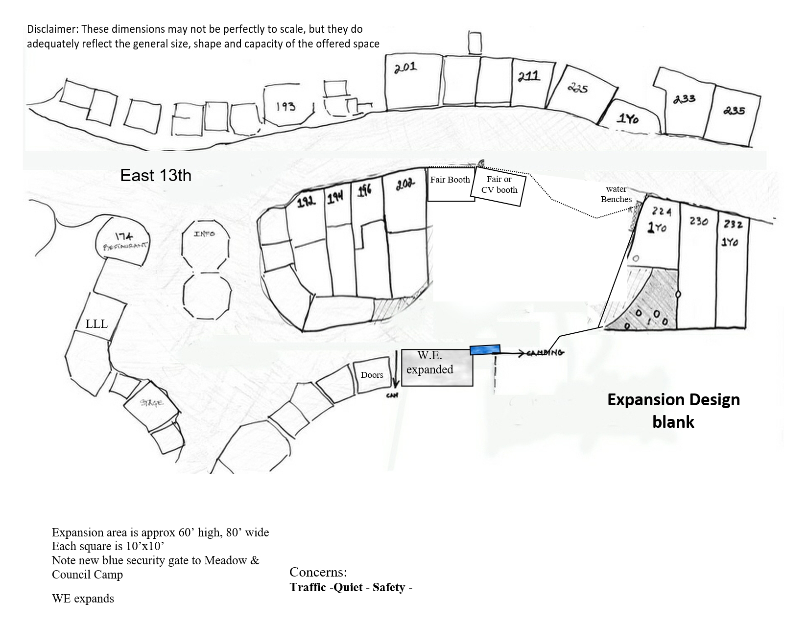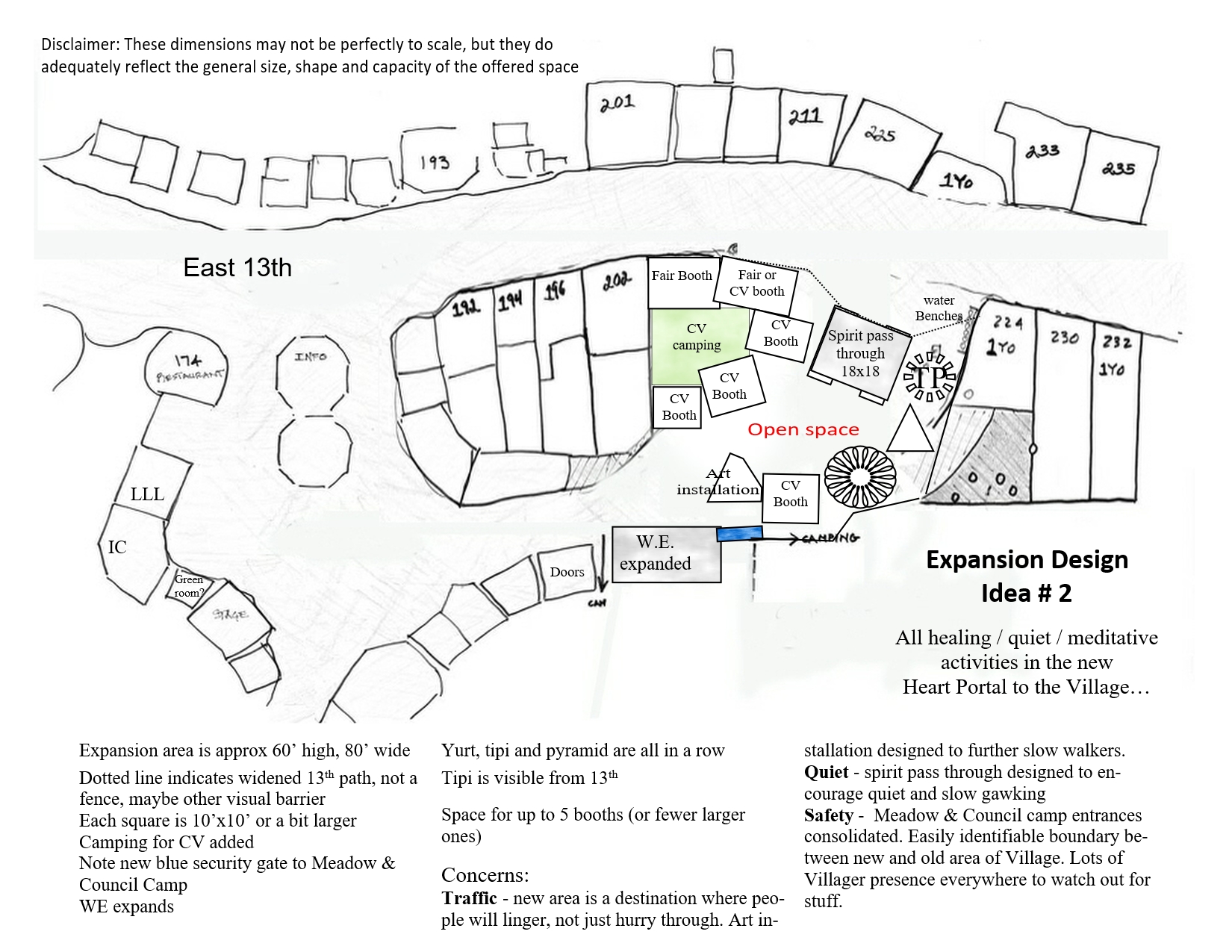 Below is an image of the village and the new real estate we accepted from the Fair. In subsequent meetings with affected craft vendors, this area became subject to further negotiations that are ongoing.