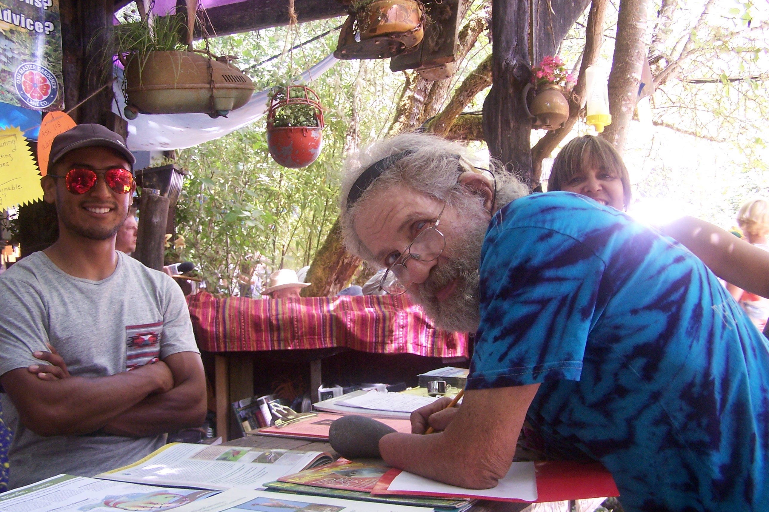 OUR GREEN EARTH MISSION STATEMENT: Educate, Empower & Inspire for the sake of Life and Earth. We’re a diverse collection of community educators & activists dedicated to promoting social & ecological justice for current & future generations of all species. We welcome your presence in our common goal of cherishing and protecting this green and beautiful planet. We are located between Peace and Justice and Spirit, with a big sun adorning the front of our booth. OUR CHILDREN’S TRUST, RESTORING EDEN, FRIENDS OF BUFORD PARK, 350 CORVALLIS, AND MANY MORE…