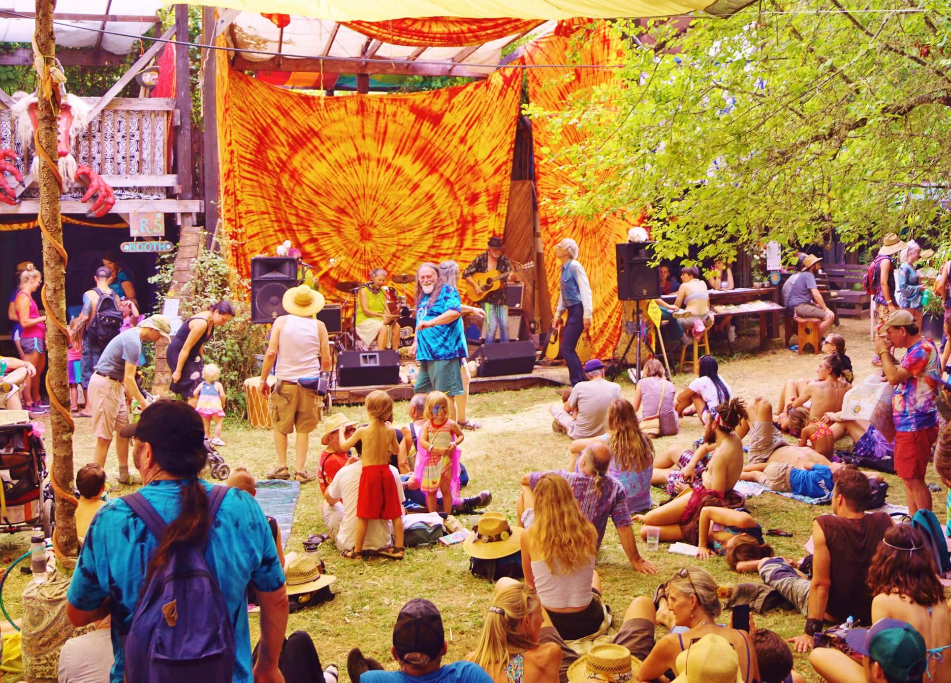 We provide a service to the Village by drawing the public to us. Performances are during the even hours; the odd hours are devoted to Workshops and Demos. We have 12 performance slots during the OCF; four per day. Performances are scheduled during February and March; to apply please email Bob Fennessy at publicity@wowhall.org. The Community Village stage is run by volunteers, and is run on Solar Power with help from our friends in Energy Park.