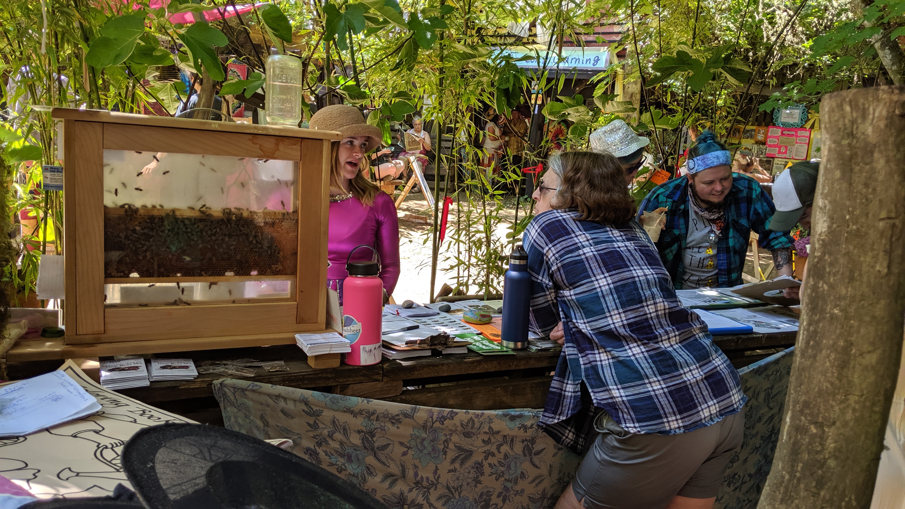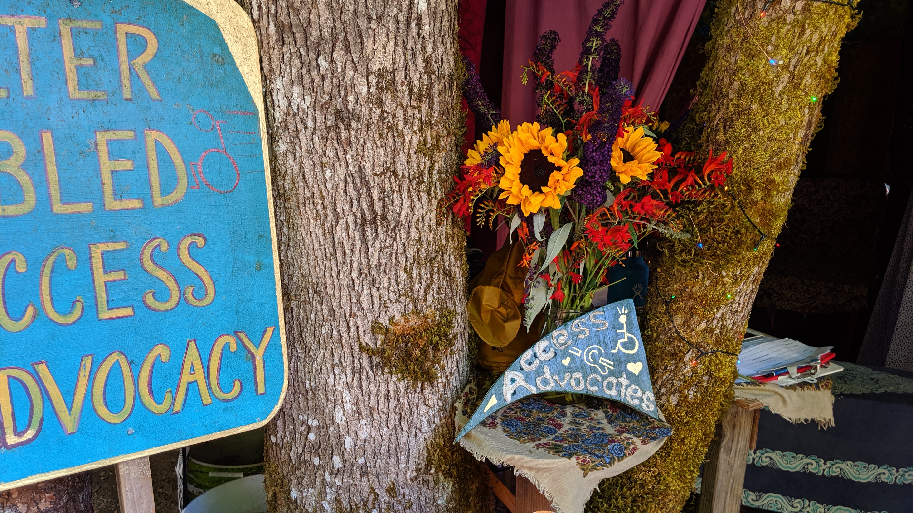 Rainbow Village advocates for LGBTQI+ issues in the fair and the world at large. New in 2016, Rainbow Village was the first explicitly LGBTQI+ space in the fair. They are located in a small space between Peace and Justice and the Green Earth booth.